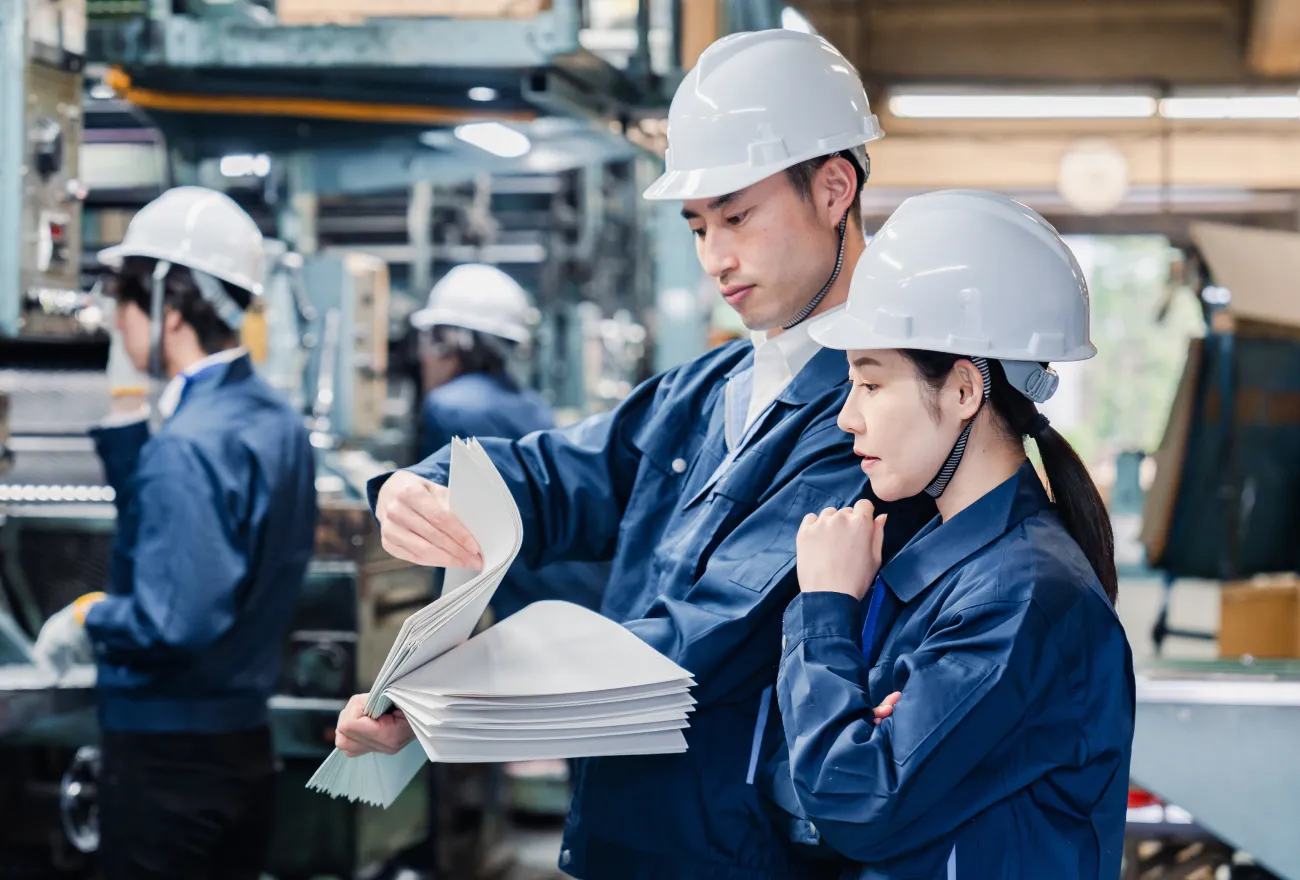 レイアウトに無駄が多く発生していたため、資料作成や確認作業などを集約できるように机や機材の配置を再構成しました。作業のばらつきや重複が発生していた工程はフロー全体を見直し、役割や手順を明確化。